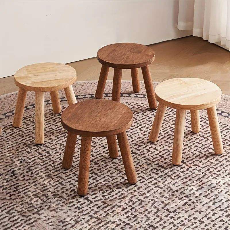 Tabouret en bois rustique au fini naturel, construction robuste mettant en valeur la belle texture du bois, idéal pour les intérieurs de salon