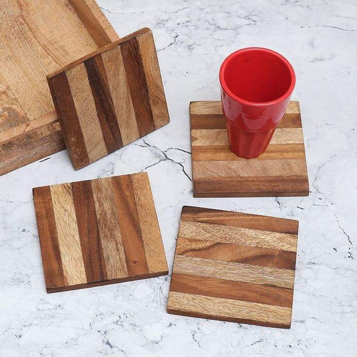 Ensemble de dessous-de-verre en bois au fini naturel, améliorant la sécurité de la surface de la table à manger avec un attrait décoratif rustique classique