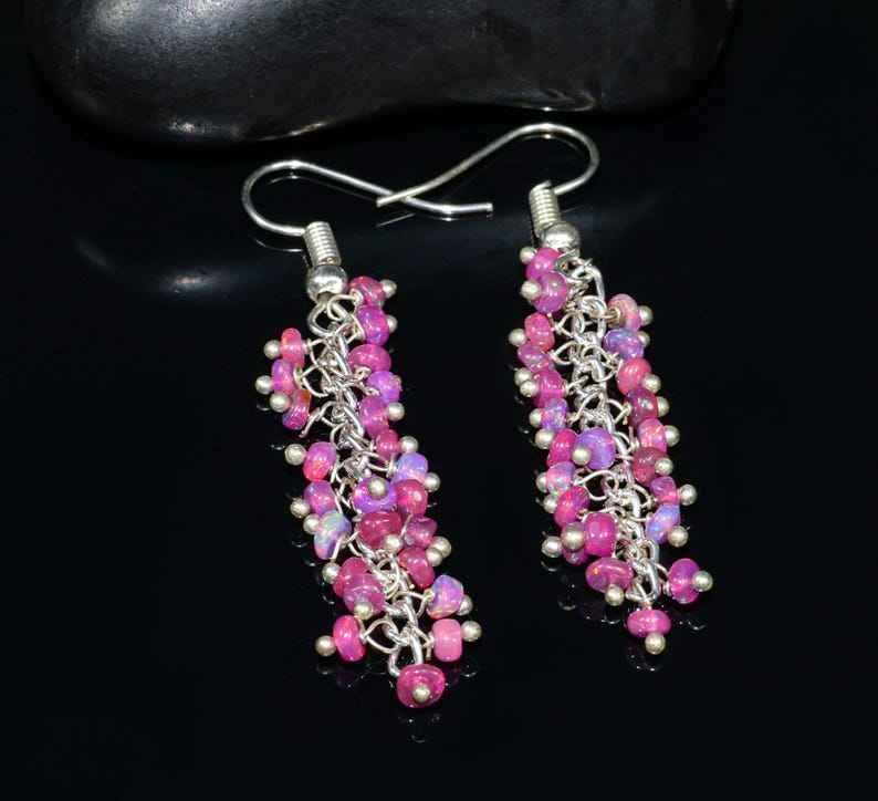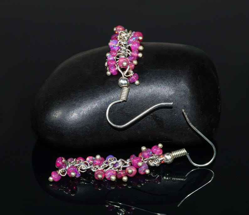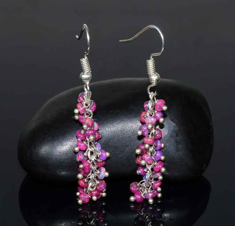 Keyword:Fire Lavender Ethiopian Opal Beaded Cluster Earrings Shine With