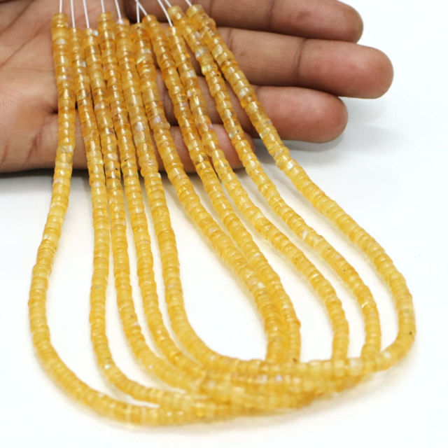 Perles Heishi en pierre de lune jaune arc-en-ciel naturelle et chatoyante, forme de pneu lisse, 15 pouces, perles en forme de roue en pierre de lune jaune, vente en gros