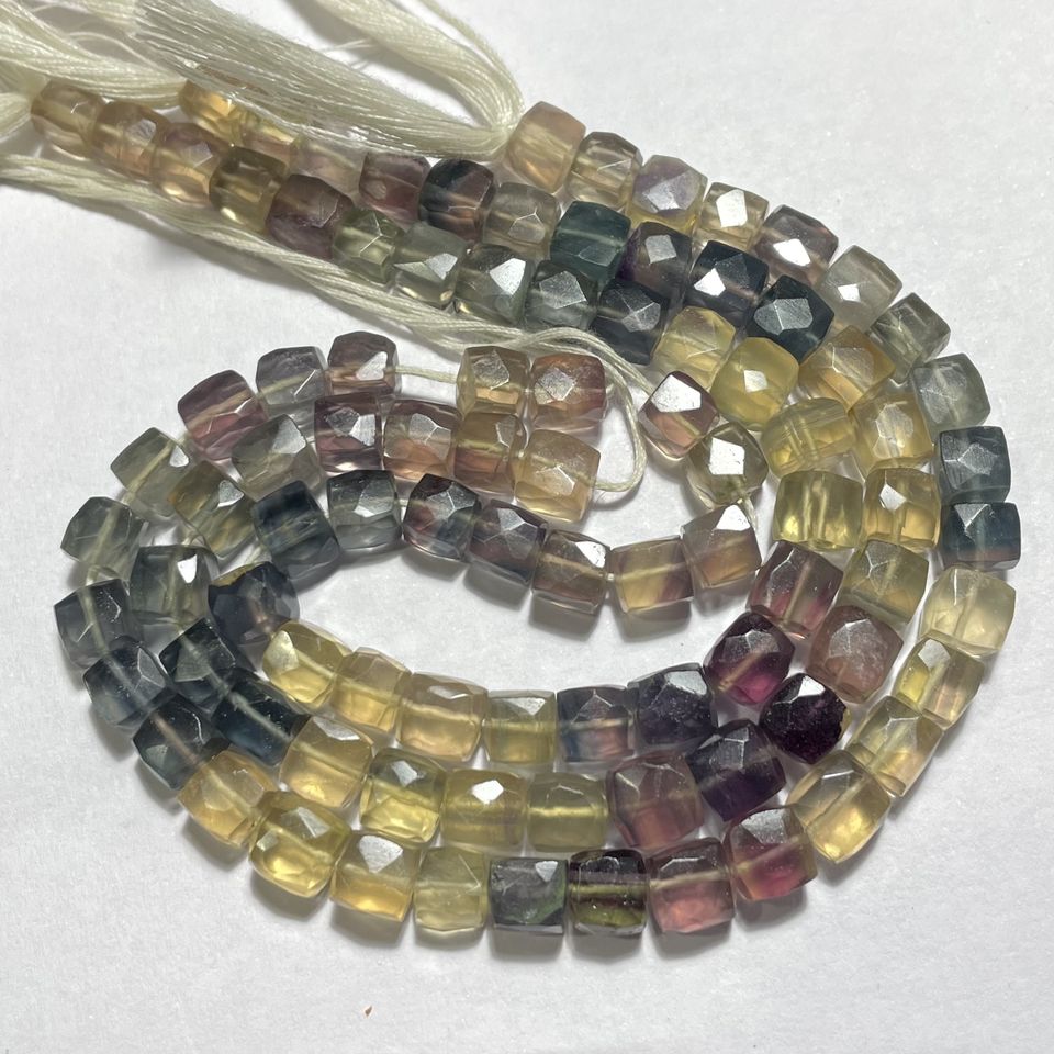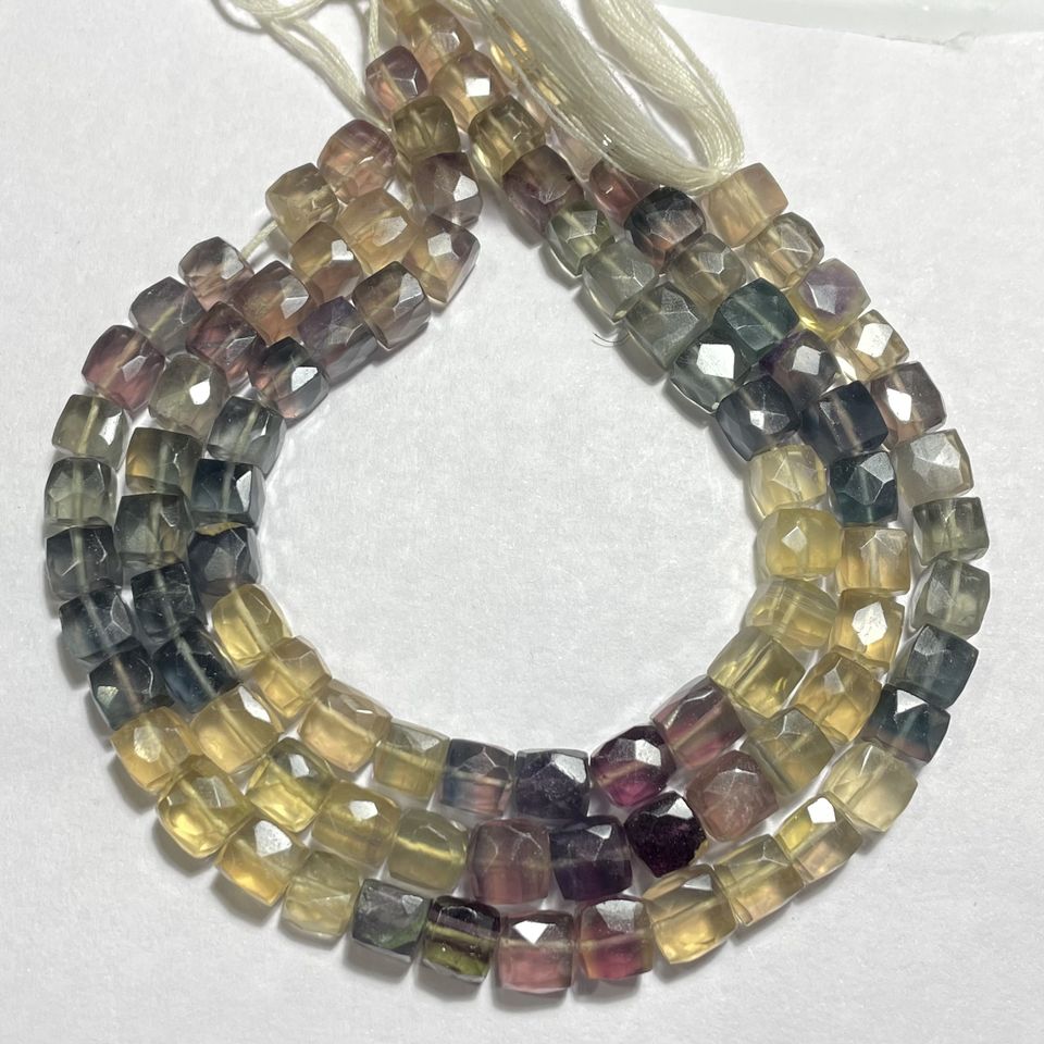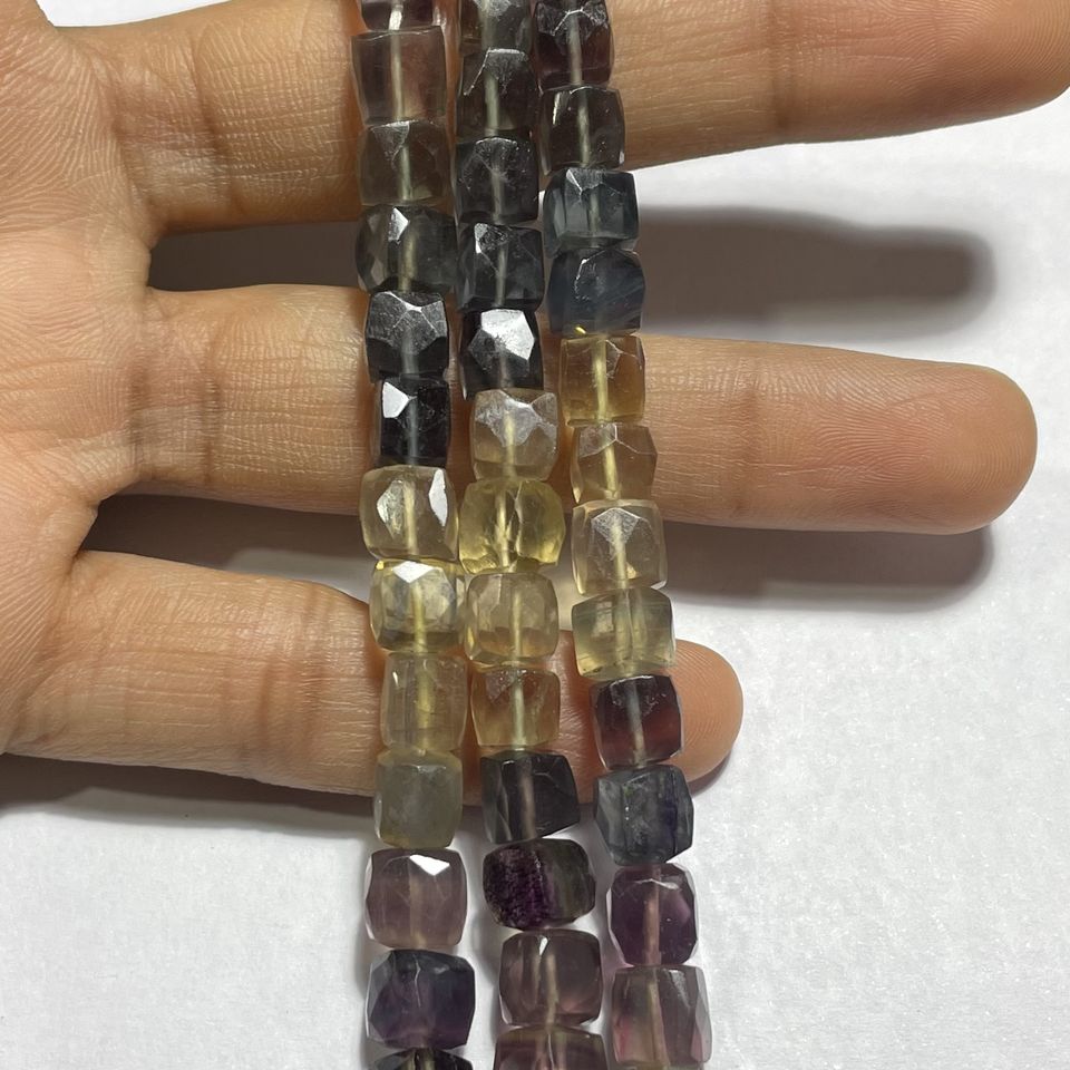 Perles en forme de boîte à facettes en fluorite naturelle Cube de fluorite multicolore, perles en gros pour la fabrication de bijoux
