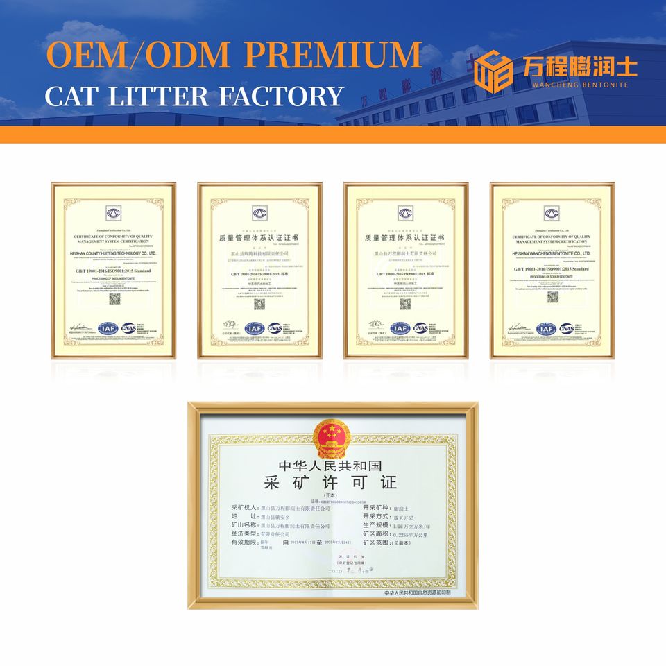 Écologique, Sans poussière, faible poussière, agglomération rapide, hautement adsorbant, Flushable, contrôle des odeursDispositif