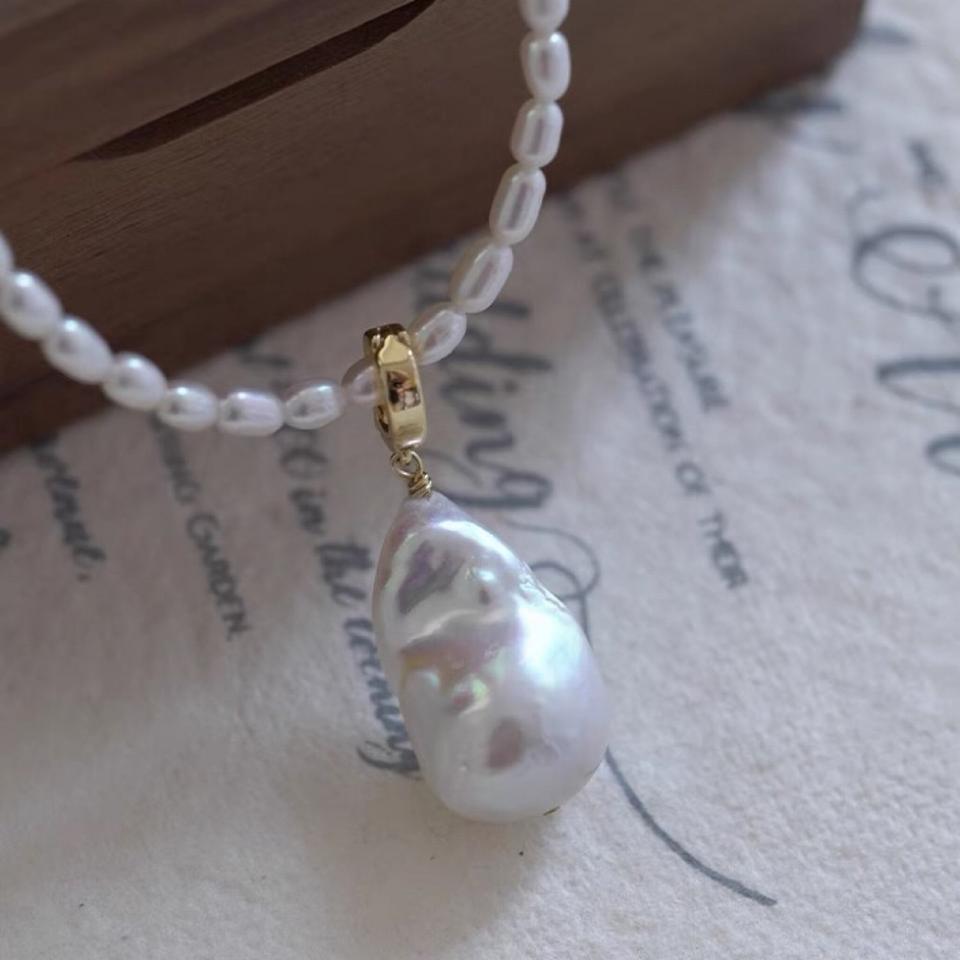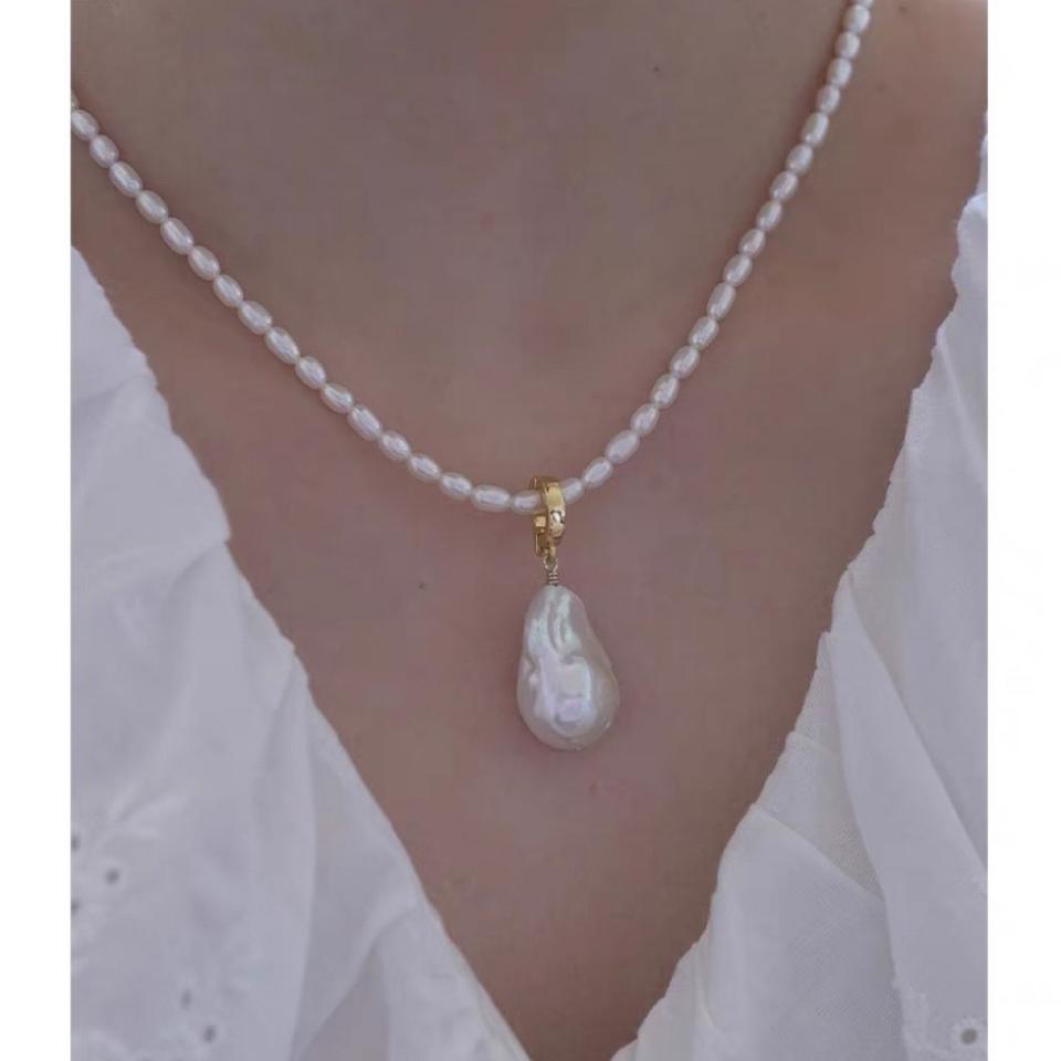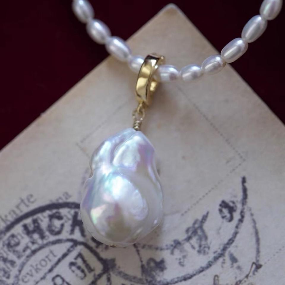 Pendentif en perle de queue de poisson d'eau douce naturelle, collier polyvalent détachable pour femmes, grand collier en perle de riz à forte luminosité