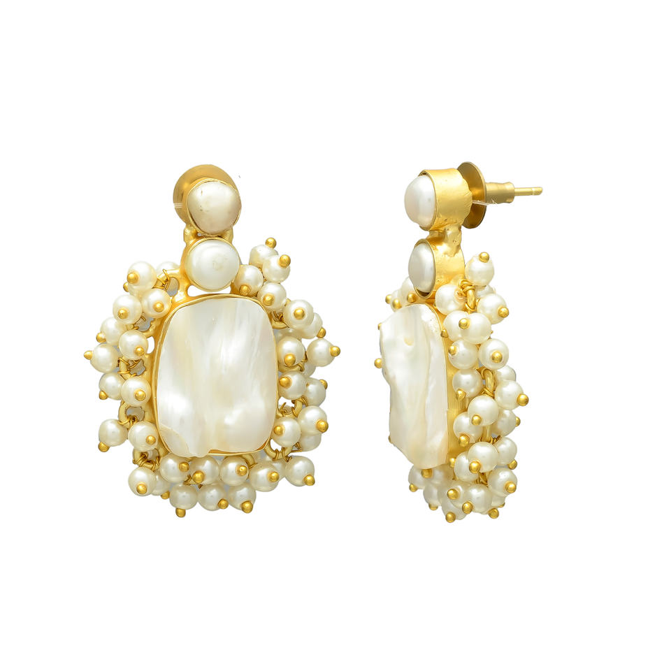 Natural Freshwater Pearls Brass Women's Vintage Stud Earrings Small White Pebbles 24K Gold Plated Wedding Fashion Accessories