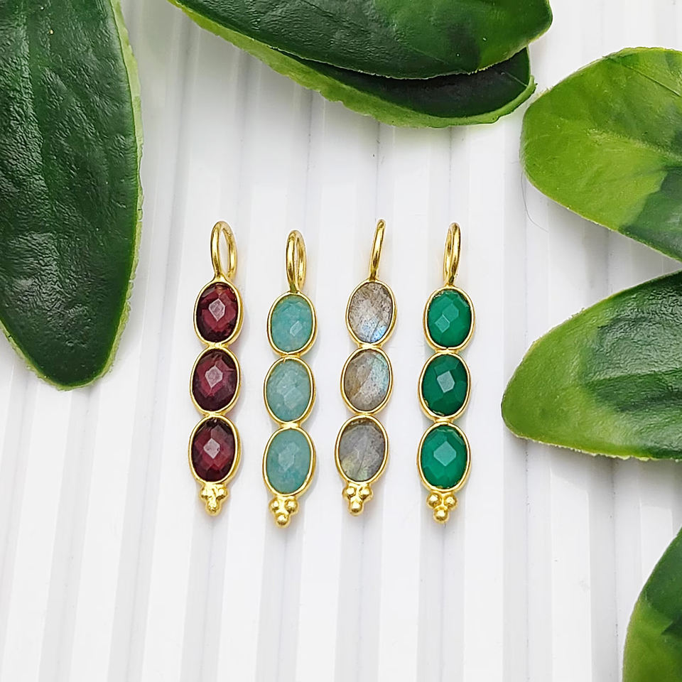 Product Name:Gemstone 3 Stone Pendant 6x4mm Oval 925 Silver Bezel Charms