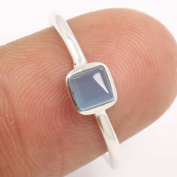Pierre précieuse naturelle incroyable coussin coupe calcédoine bleue 925 bague minuscule en argent sterling massif toutes les tailles disponibles nous 7 en gros