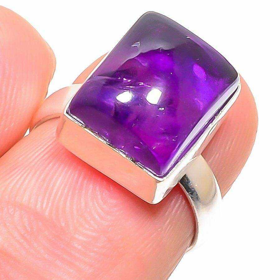 Bagues en Améthyste Naturelle Plaqué Argent Sterling, Sertissage Clos, Tailles Personnalisables, Forme Octogonale, Pour Mariage et Fêtes