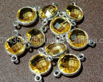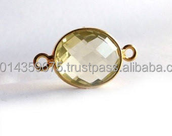 Pendentifs et connecteurs en argent sterling naturel avec quartz citron, sertis clos, plaqués rhodium et or, pour bijoux de fête