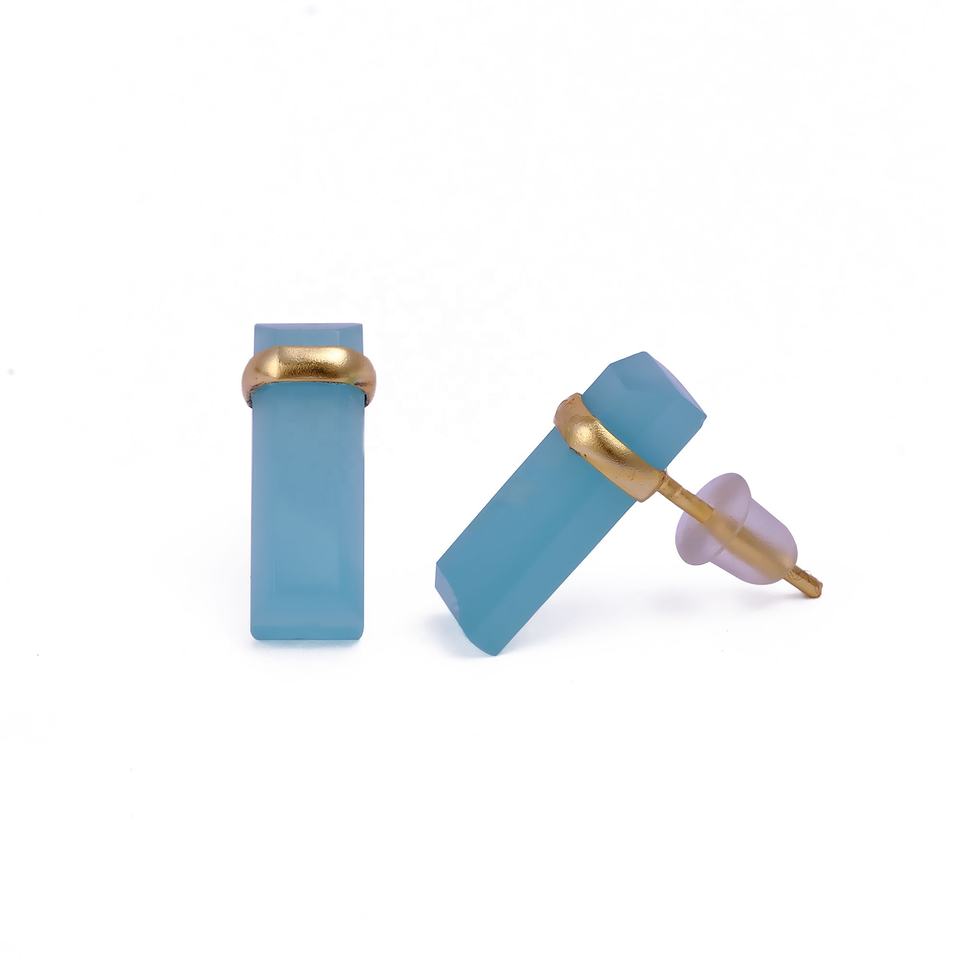 Boucles d'oreilles clous rectangulaires en pierres précieuses naturelles, plaquées or, faites à la main, style minimaliste, géométriques, tendance pour femmes