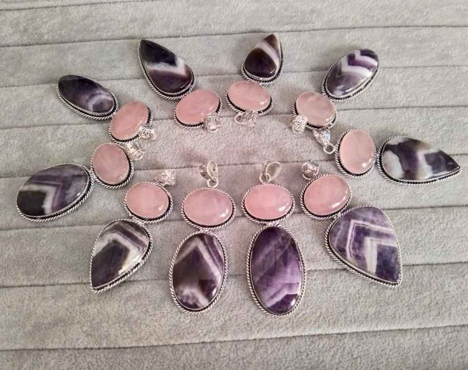 Nom du produit:Pendentif Quartz Rose et Améthyste Plaqué Argent