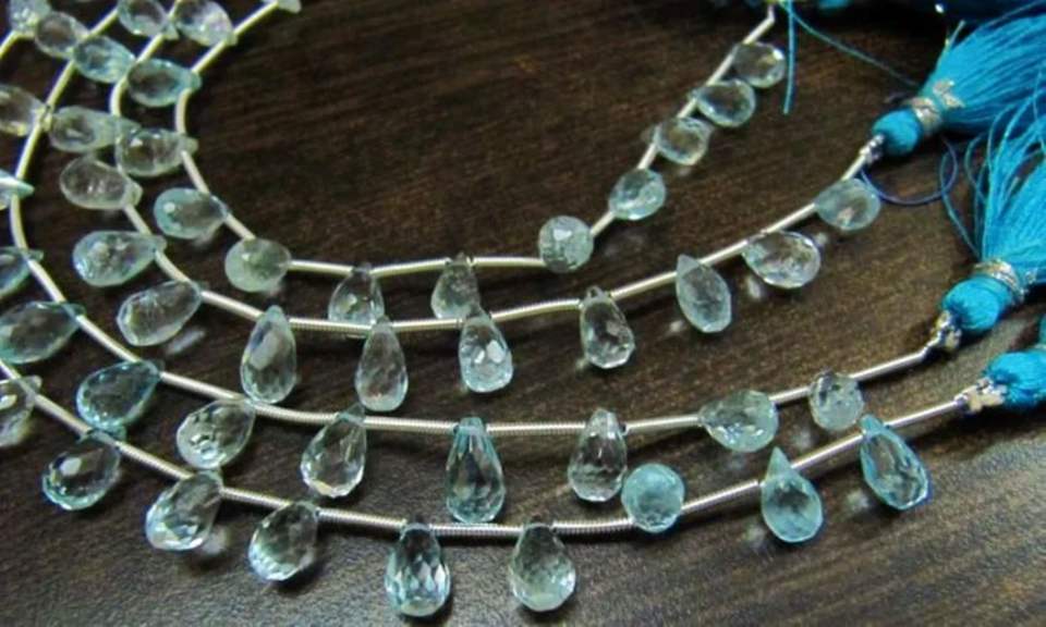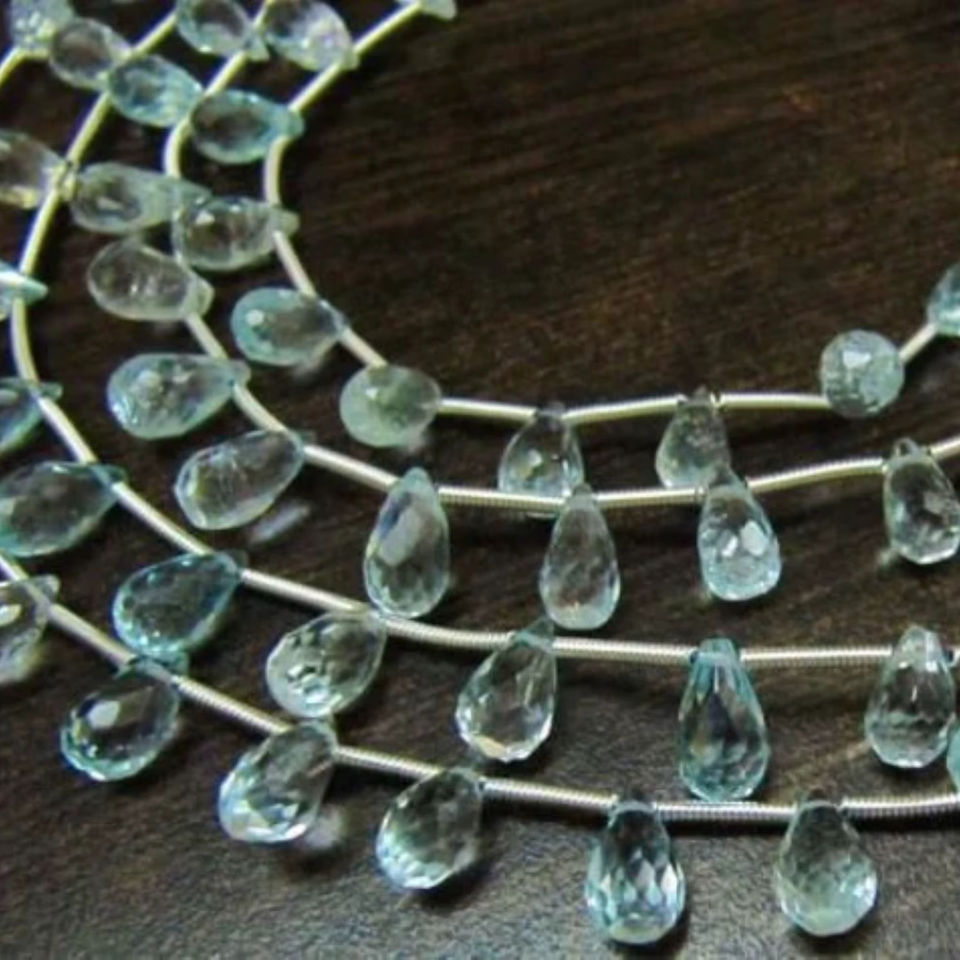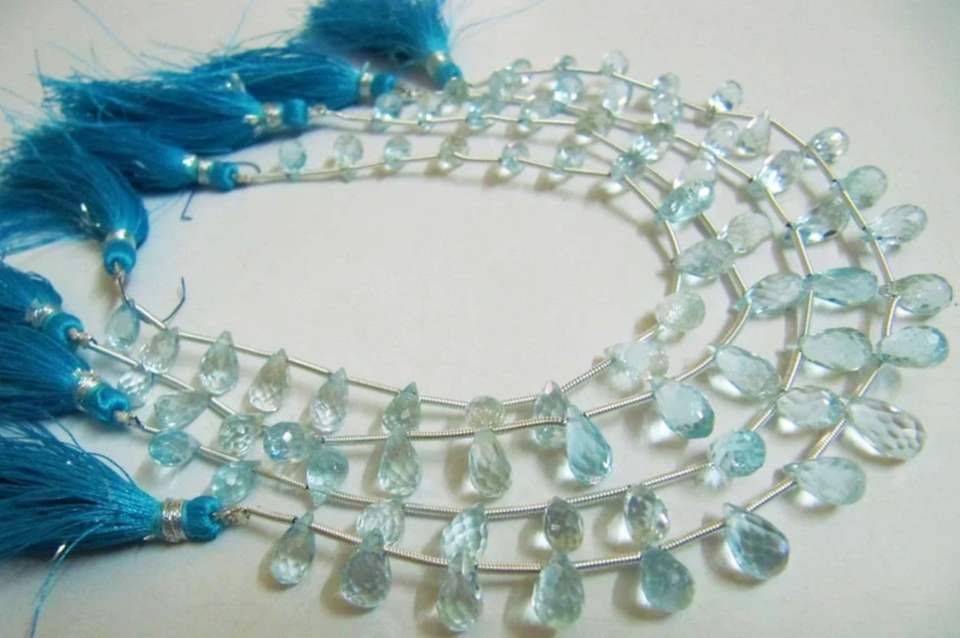 Topaze bleue véritable naturelle en forme de goutte ciel à facettes BT 5x6mm à 6x9mm perles brin 8 pouces de long perles de pierres précieuses de couleur bleu ciel