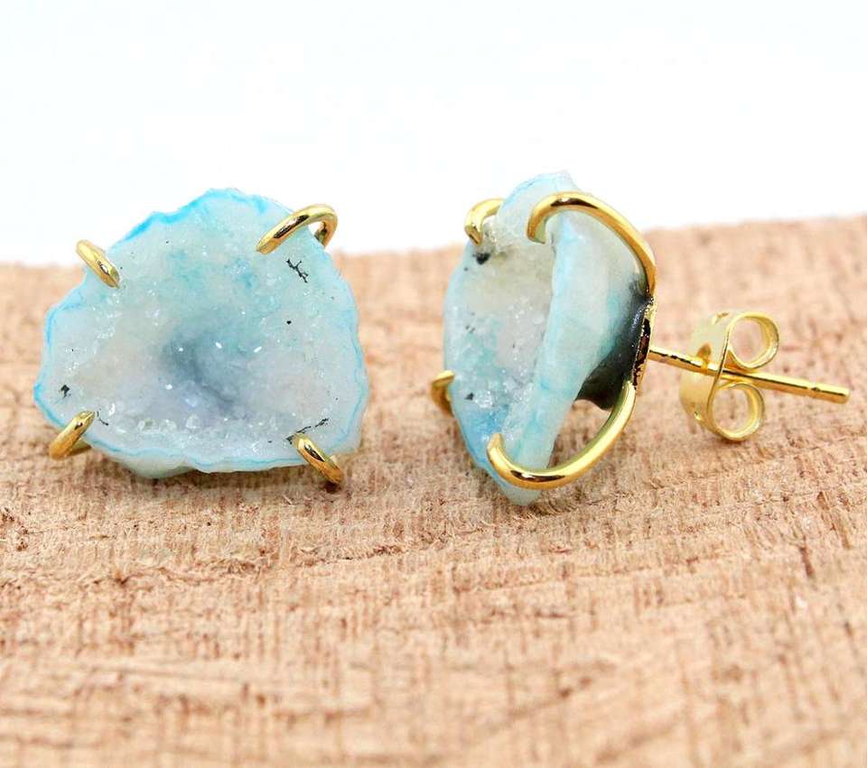 Géode naturelle druzy tranche goujon plaqué or poussoir forme libre fantaisie résine scintillante cristalliser agate pour les femmes