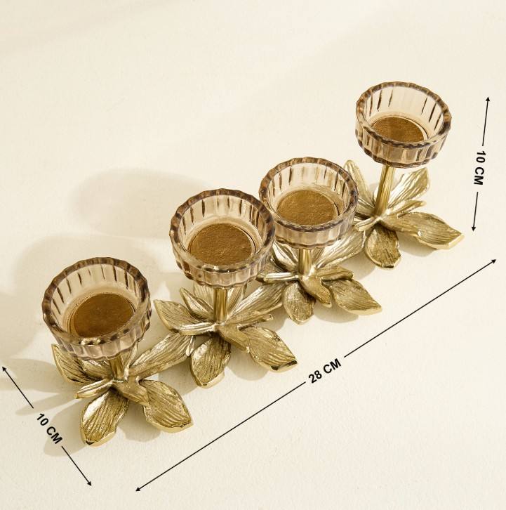 Support de bougie chauffe-plat 4 tasses en métal doré naturel, durable, écologique, fait main, pour décoration intérieure, Noël, Pâques, table