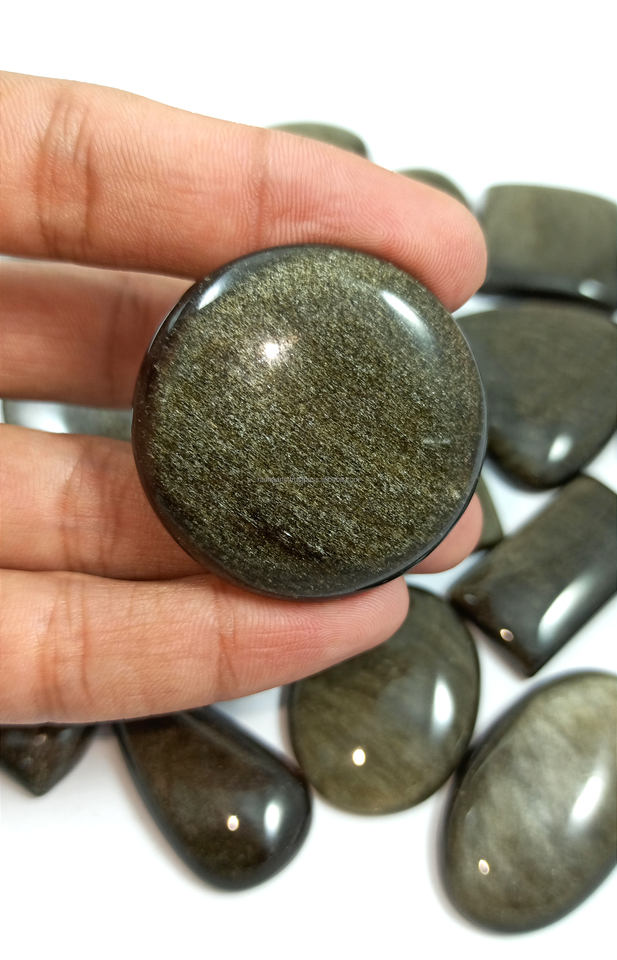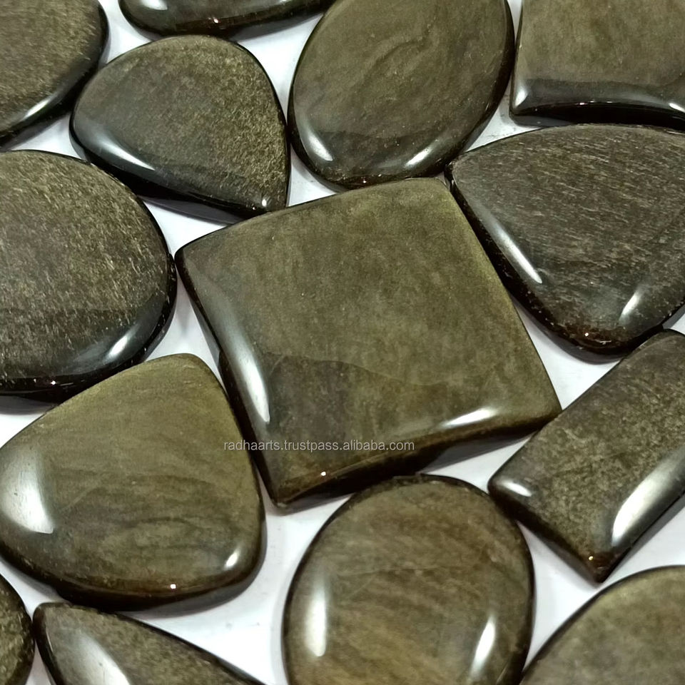 Lot de cabochons en obsidienne dorée naturelle en forme de mélange de pierres précieuses semi-précieuses à dos plat Vente en gros Lot de bijoux en fil métallique