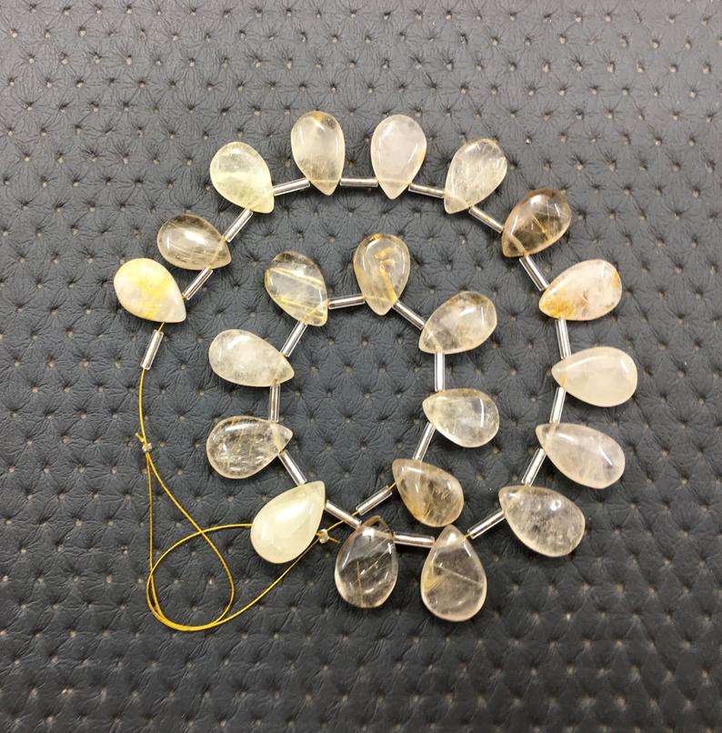 Pierre précieuse Rutile naturelle dorée, 21 pièces, perles de Briolette en forme de poire lisse, fabricant en gros, véritable, haute qualité