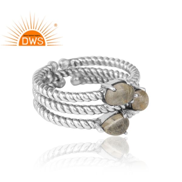 Bague en argent sterling ajustable faite à la main avec pierre précieuse naturelle de rutile doré, ensemble de bagues empilables, fabricant de bijoux