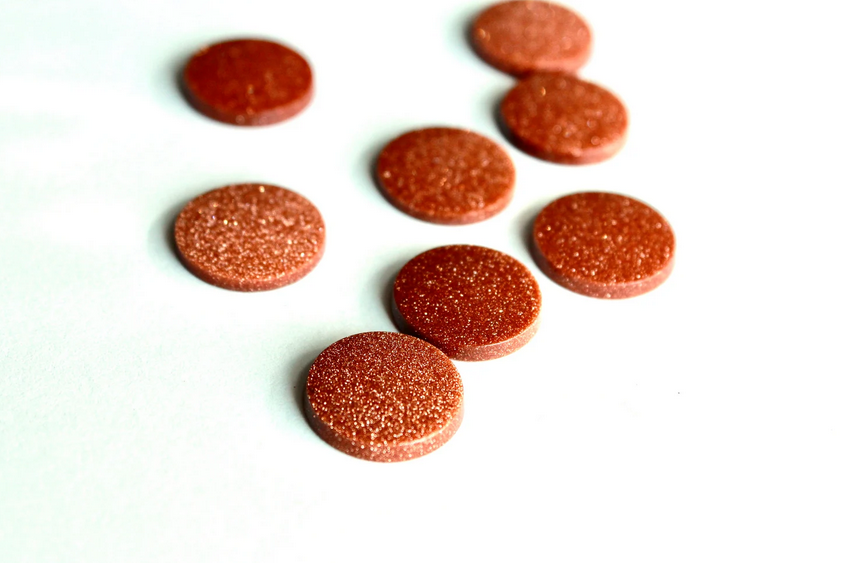 Pierre d'or naturelle forme ronde des deux côtés cabochon plat pierre précieuse pour la fabrication de bijoux pierre de soleil étincelante bracelet pierre de naissance d'août