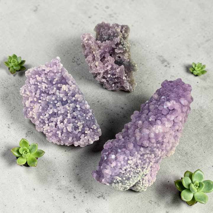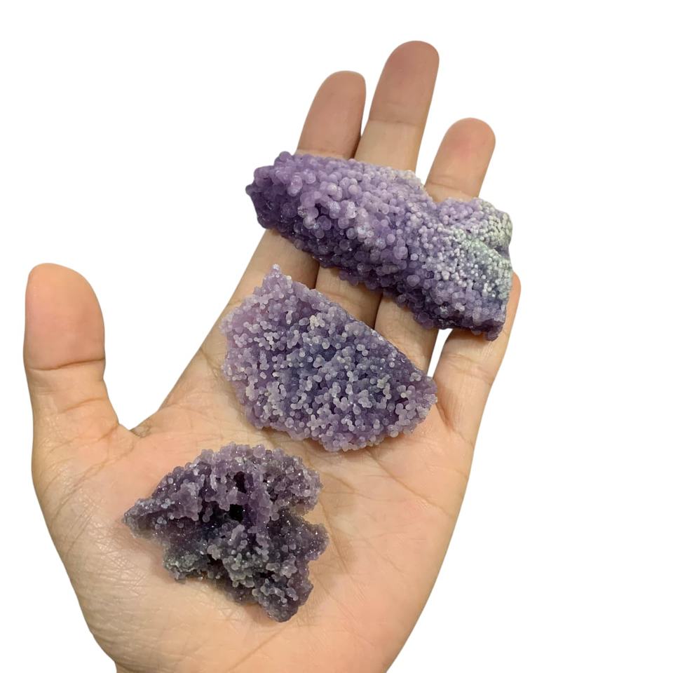 Petit spécimen d'agate de raisin naturelle, agate de raisin botryoïdale brute violette, grappe de cristaux minéraux pour collection et décoration