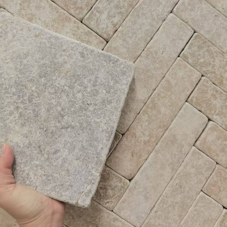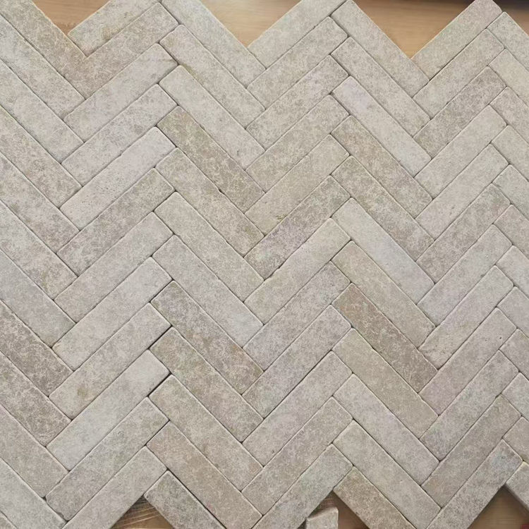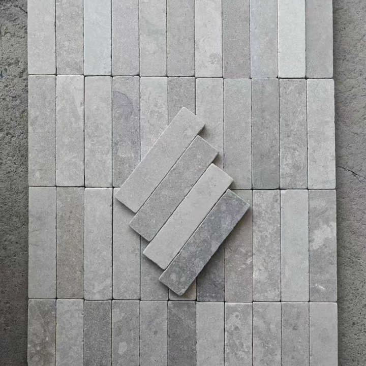 Mosaïque en pierre calcaire grise naturelle, en bande, polie
