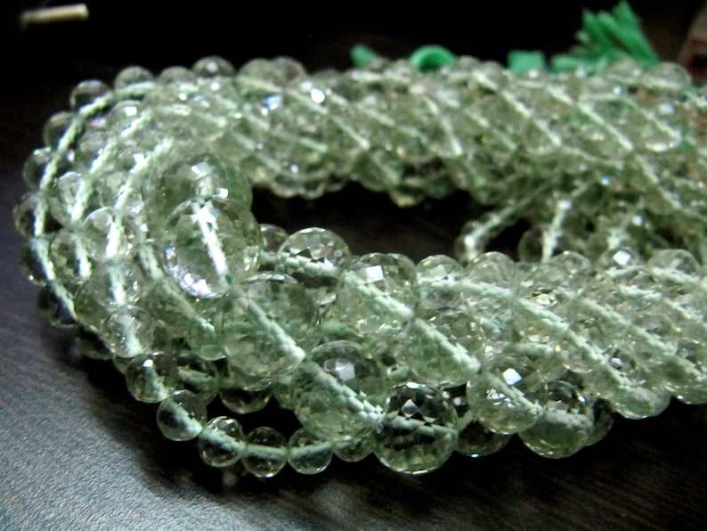 Perles de taille 5 à 10mm en forme de boule ronde d'améthyste verte naturelle de 8 pouces de long