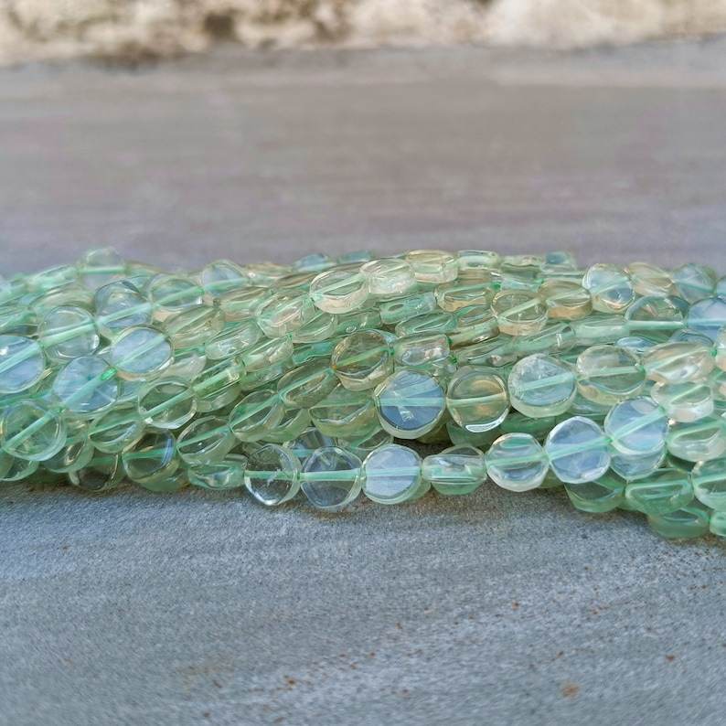 Améthyste verte naturelle lisse en forme de pièce de monnaie perles de pierres précieuses brins chaîne 5-7mm perles en vrac Lot pour la fabrication de bracelets de bijoux en vrac