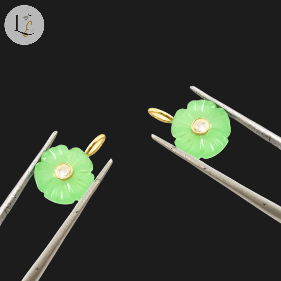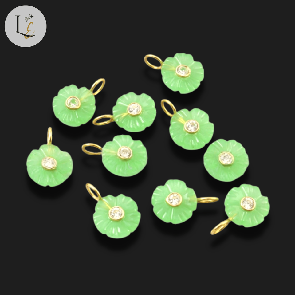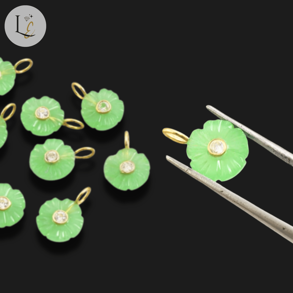 Product name:Natural Green Chalcedony Flower Shape Inlay Carved Gemstone Pendant