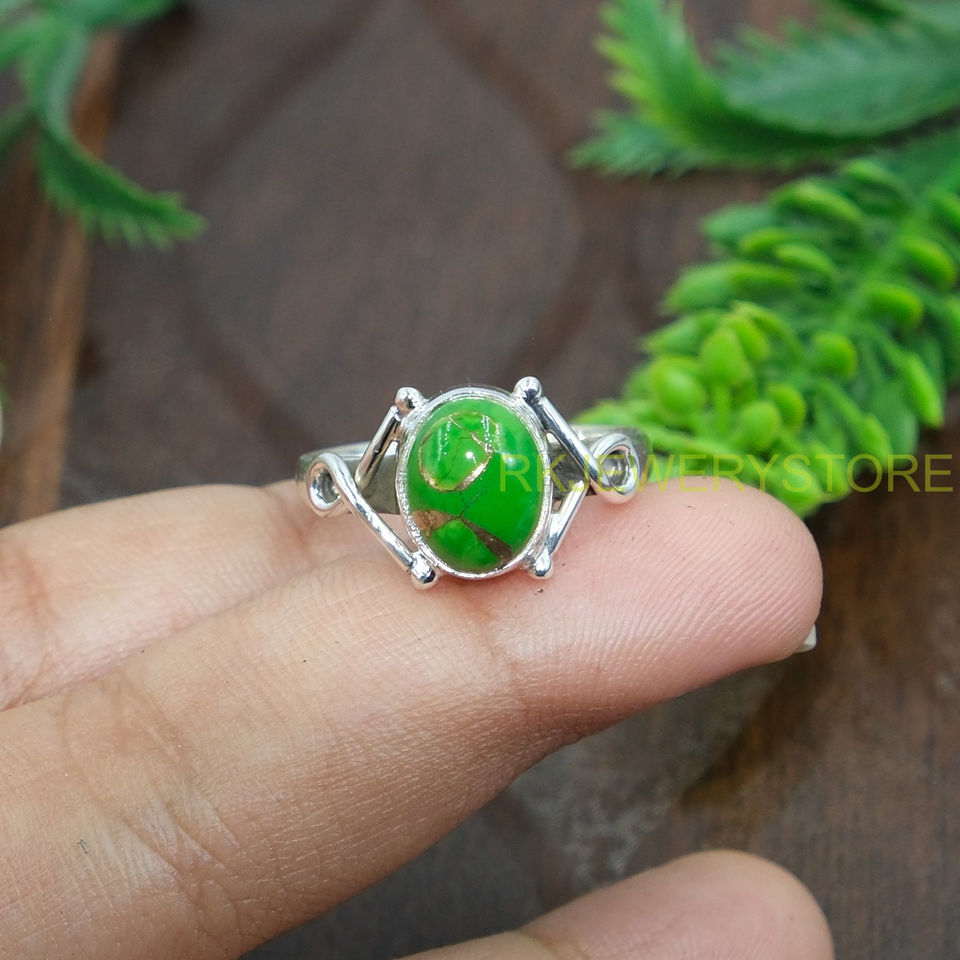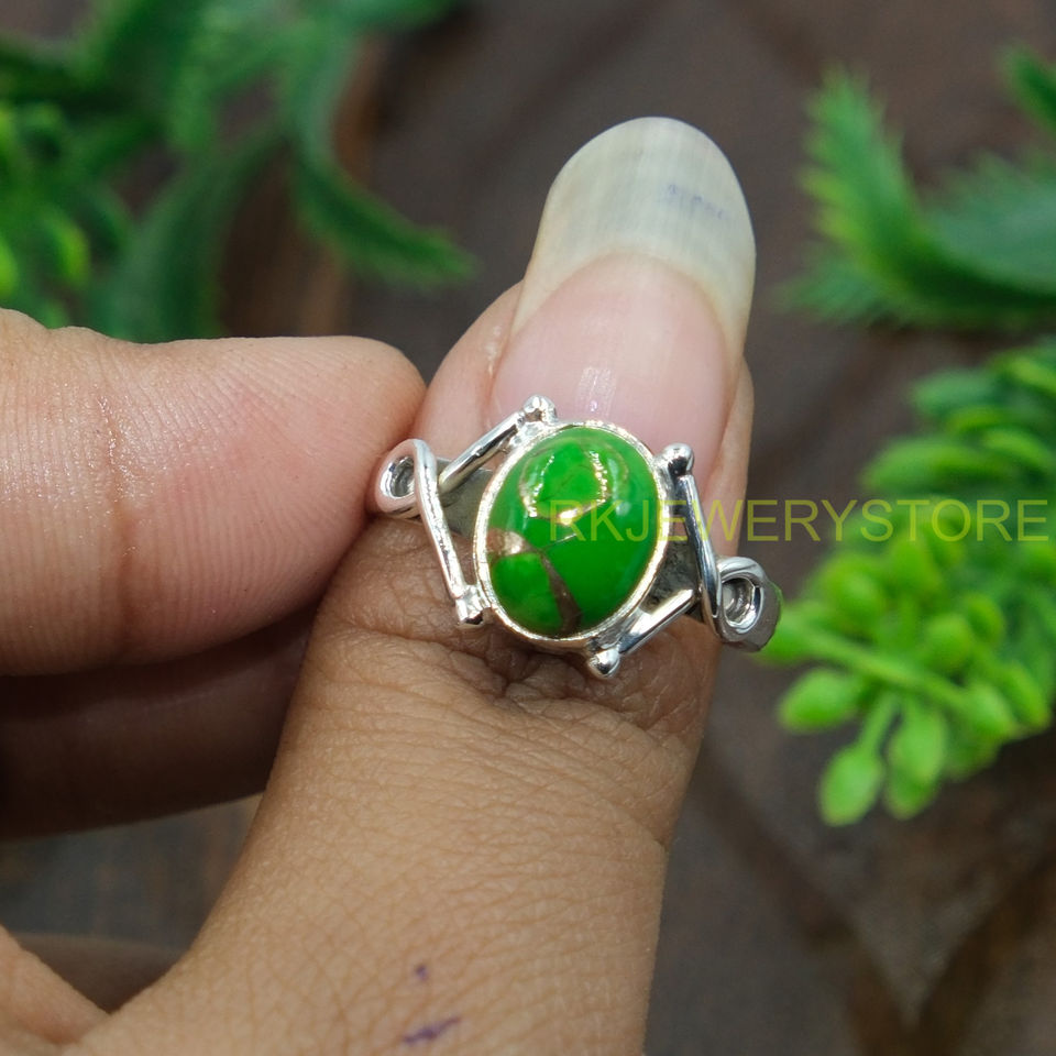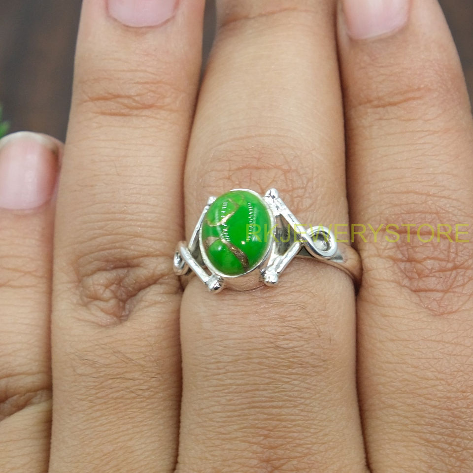 Bague en turquoise verte naturelle, argent sterling 925, bague statement, design artisanal, bague en pierres précieuses, bijoux en turquoise, cadeau