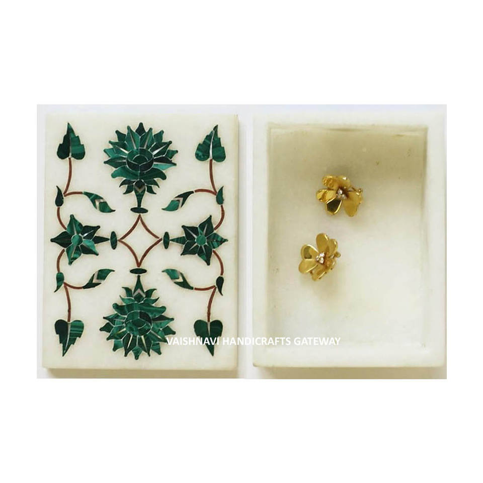 Boîte à bijoux rectangulaire élégante avec incrustations de pierre de malachite.Nom du produit
