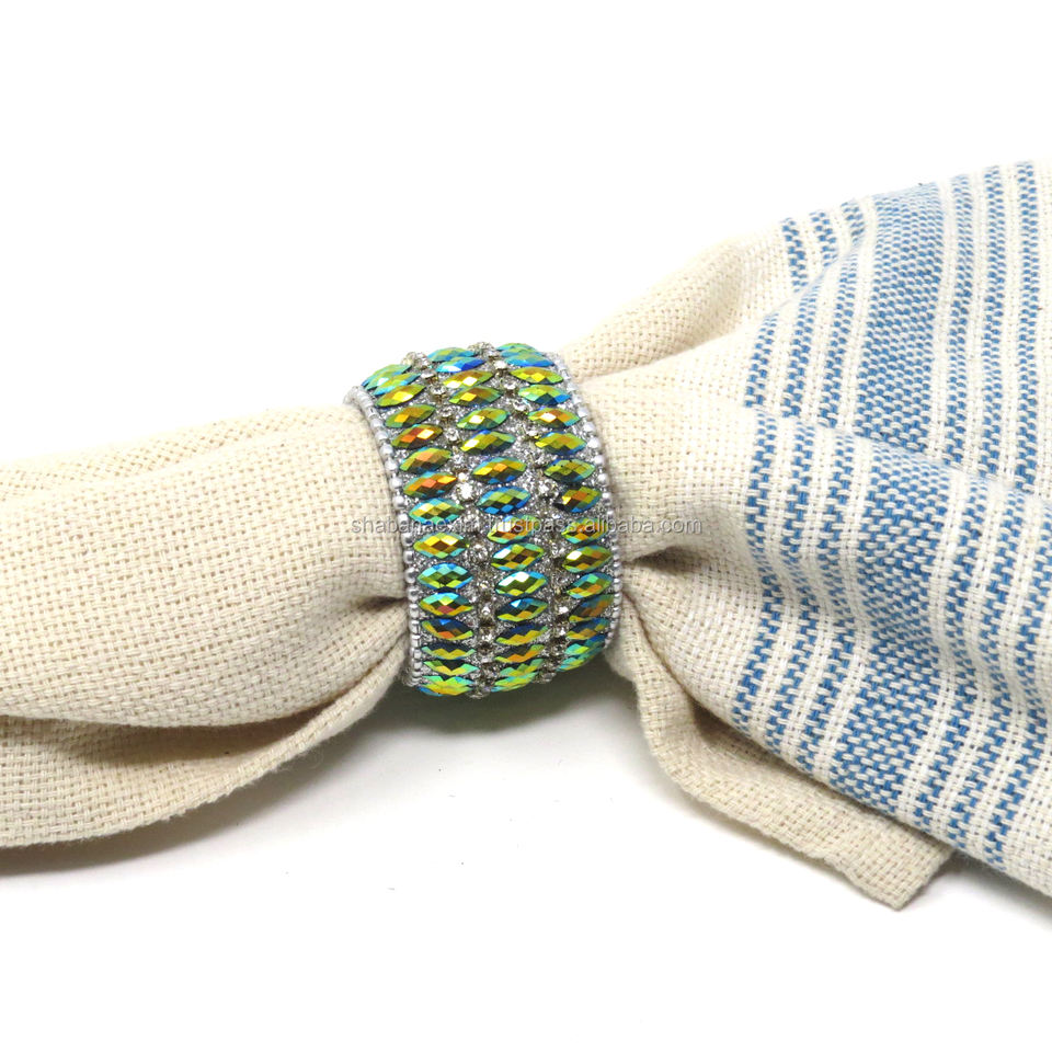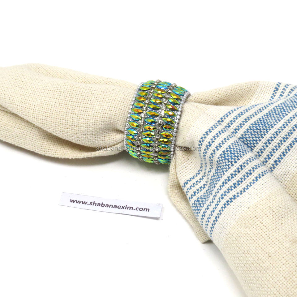 Rond de serviette vert naturel, anneaux de serviette, anneau de serviette à paillettes Lac