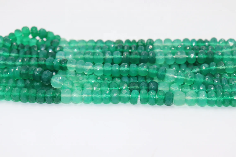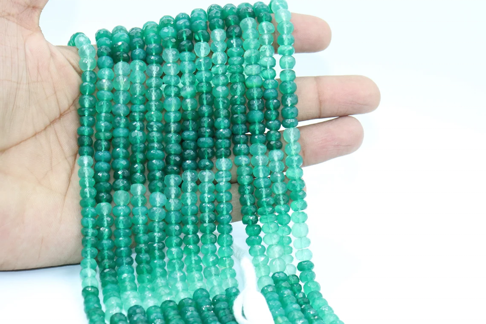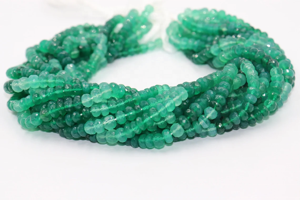Perles Rondelles Facettées en Onyx Vert Naturel 7mm, Onyx Vert Ombré, Longueur 14 Pouces, Poids Personnalisable