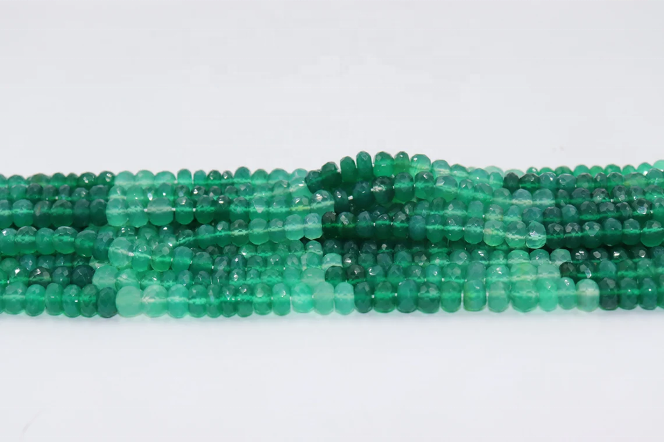 Perles rondelles à facettes teintées en onyx vert