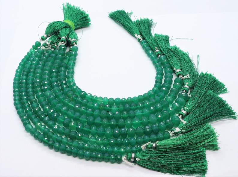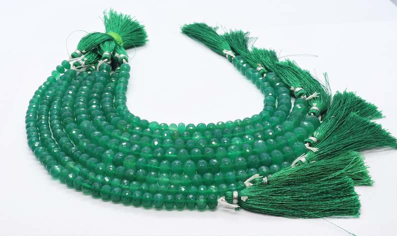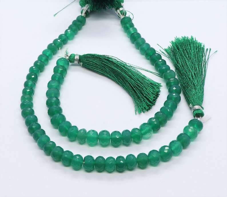 nom ou mots:Perles rondelles à facettes en onyx vert