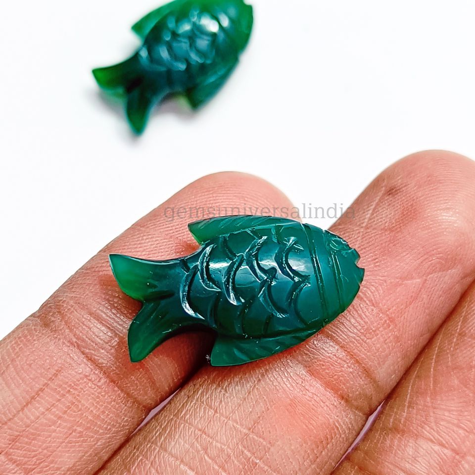 Nom du produit:Pierre précieuse sculptée à la main en forme de poisson onyx vert