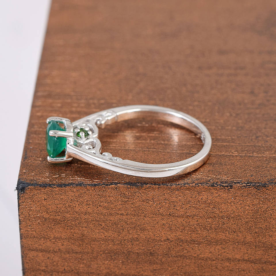 Bague de fiançailles solitaire en onyx vert naturel coupe à facettes 925 argent massif indien classique pour mariage femmes fines