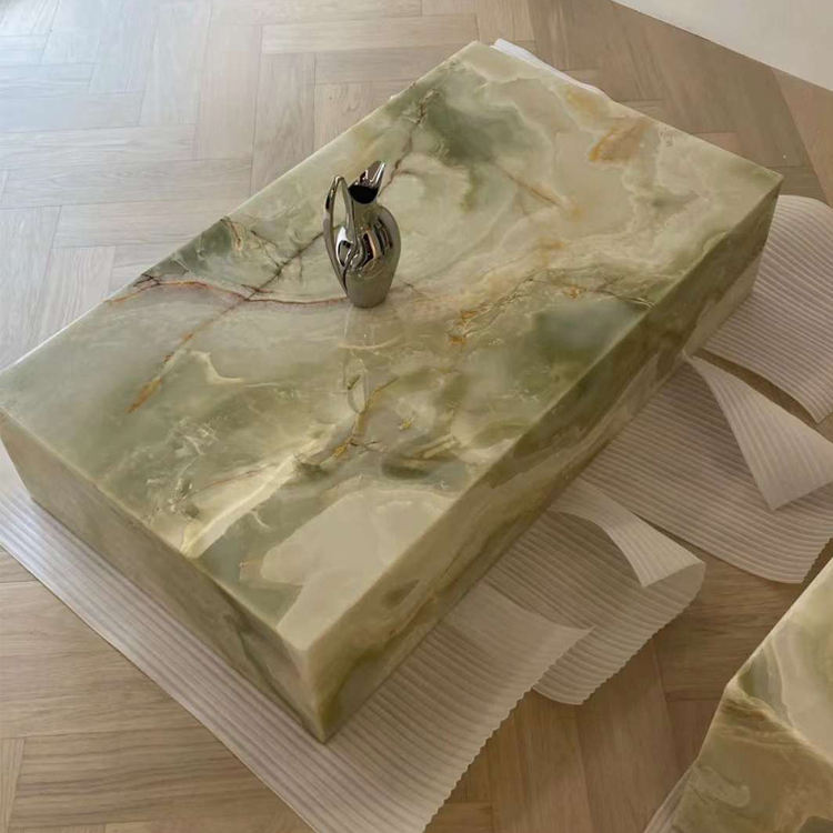 Table onyx verte naturelle, comptoir, meuble de salon, carré en marbre, côté café, offre spéciale
