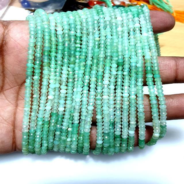 Perles facettées vertes naturelles en opale bleue du Pérou, perles facettées rondes de 3 mm, brins pour la fabrication de bijoux, 14 pouces