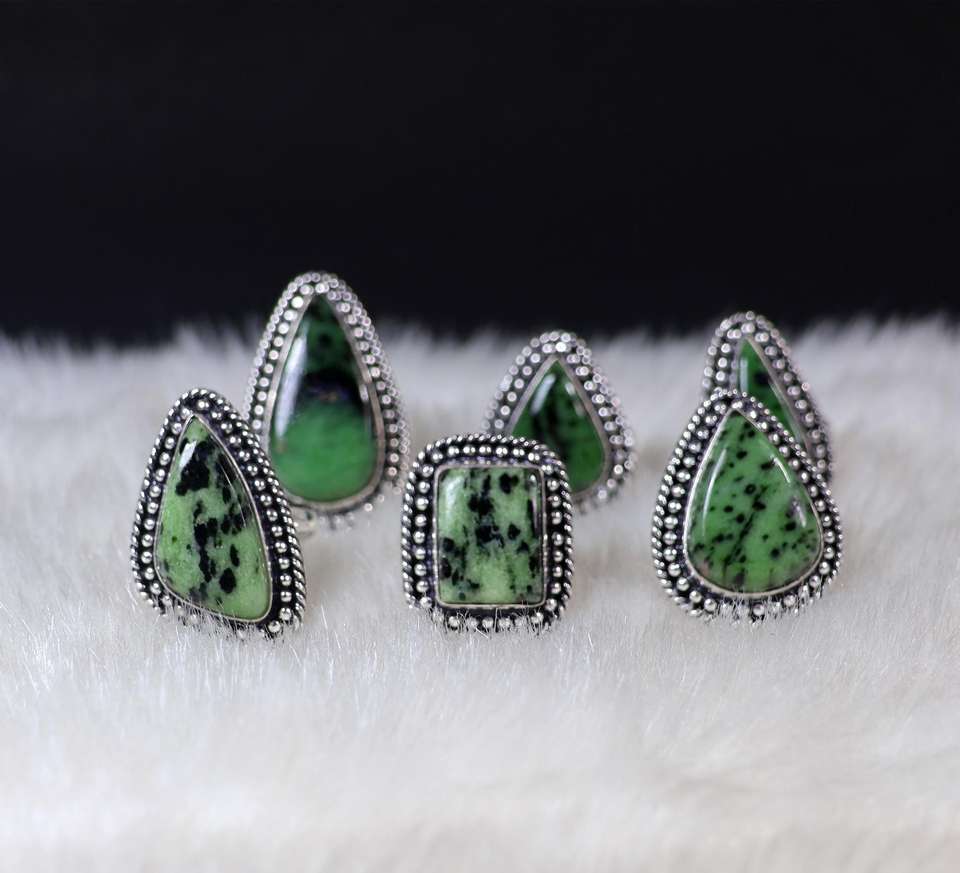 Rubis vert naturel en zoisite bijoux en pierres précieuses belle qualité bagues de pince de créateur fabrication de bijoux pour l'approvisionnement en bijoux en argent