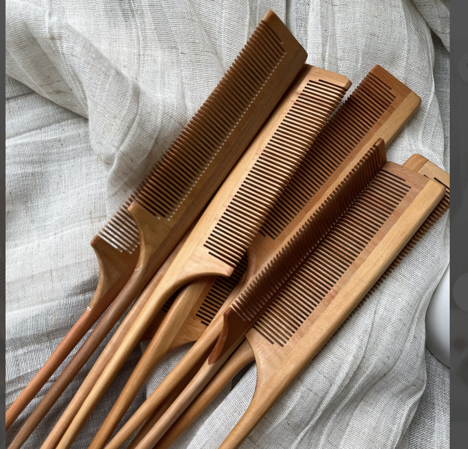 Natural Green Sandalwood Comb Scalp Massage Comb Five Teeth Meridian Wide Tooth Wooden Comb for Women Men OEM Supplier