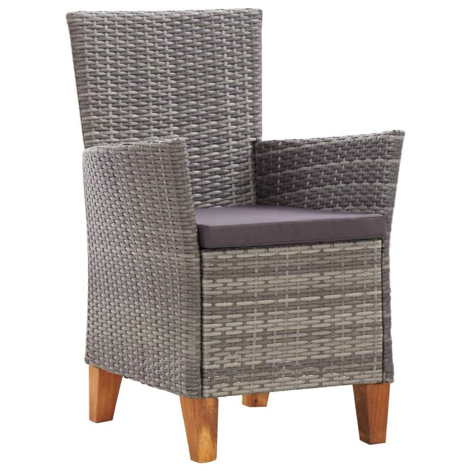 Ensemble de salle à manger de jardin gris naturel 4 places en teck et rotin, mobilier d'extérieur au design contemporain