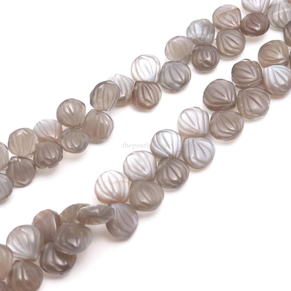 Perles de pierre de lune grise naturelle sculptées en forme de coquillage, percées sur le côté, 9-10MM, perles de pierre de lune sculptées à la main pour la fabrication de bijoux et la vente en gros