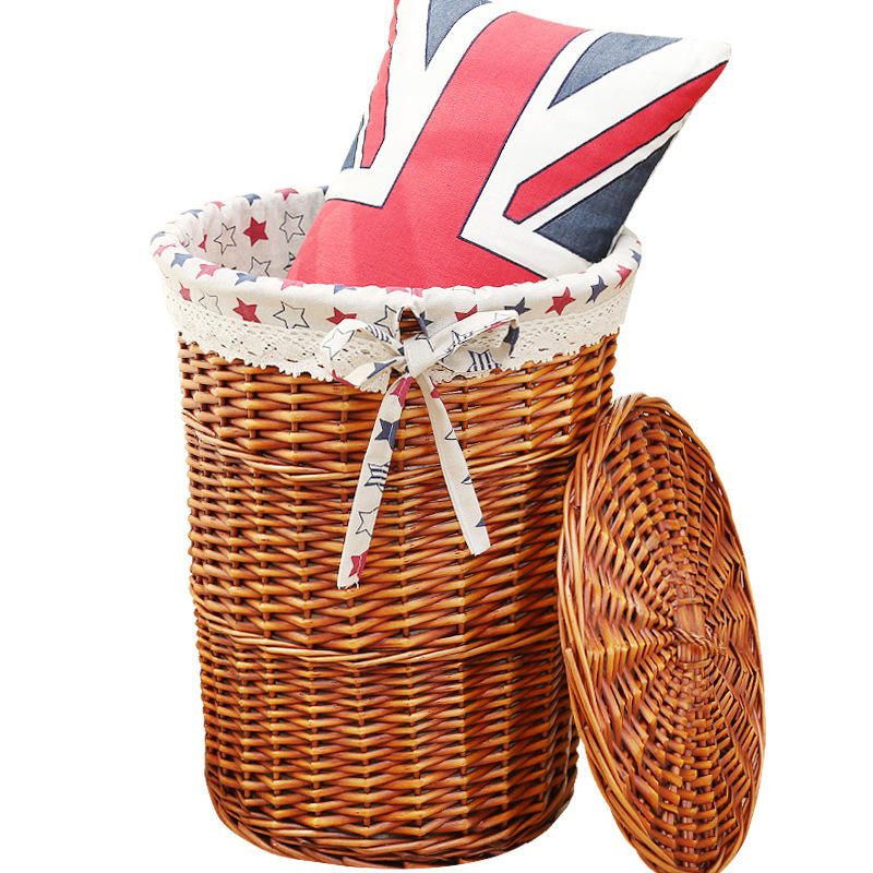 Panier de rangement rond en rotin tissé à la main, panier à linge en osier, bac à linge avec couvercle