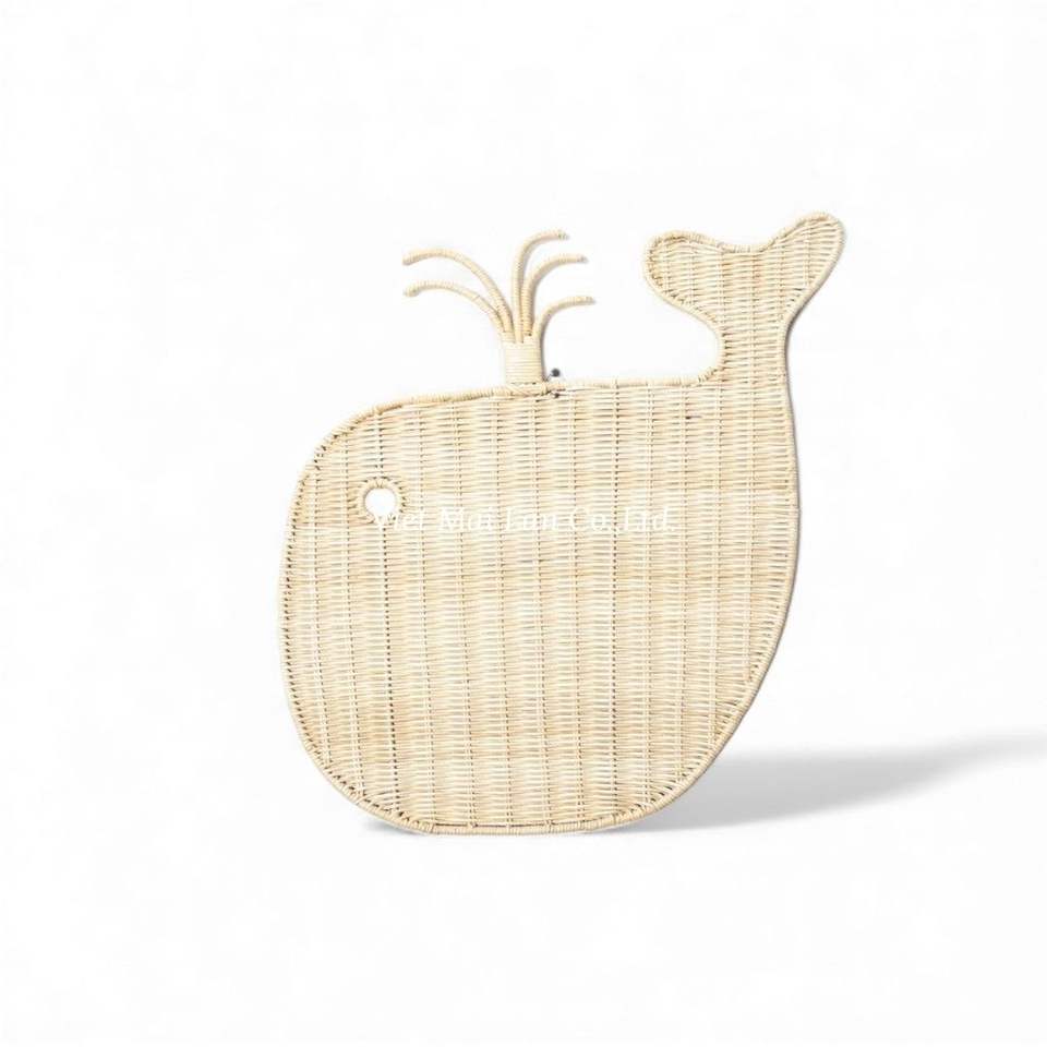Décoration murale en rotin tressé artisanal bohème en forme de dauphin pour chambre de bébé, crèche, décoration intérieure pour enfants
