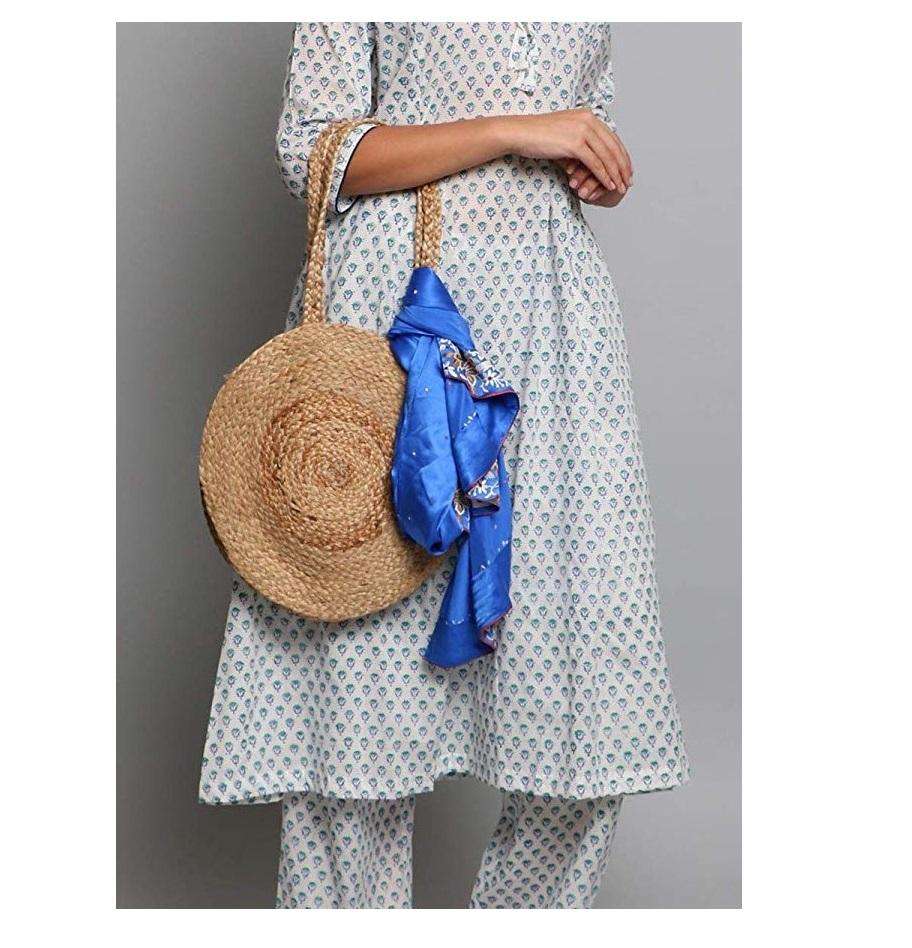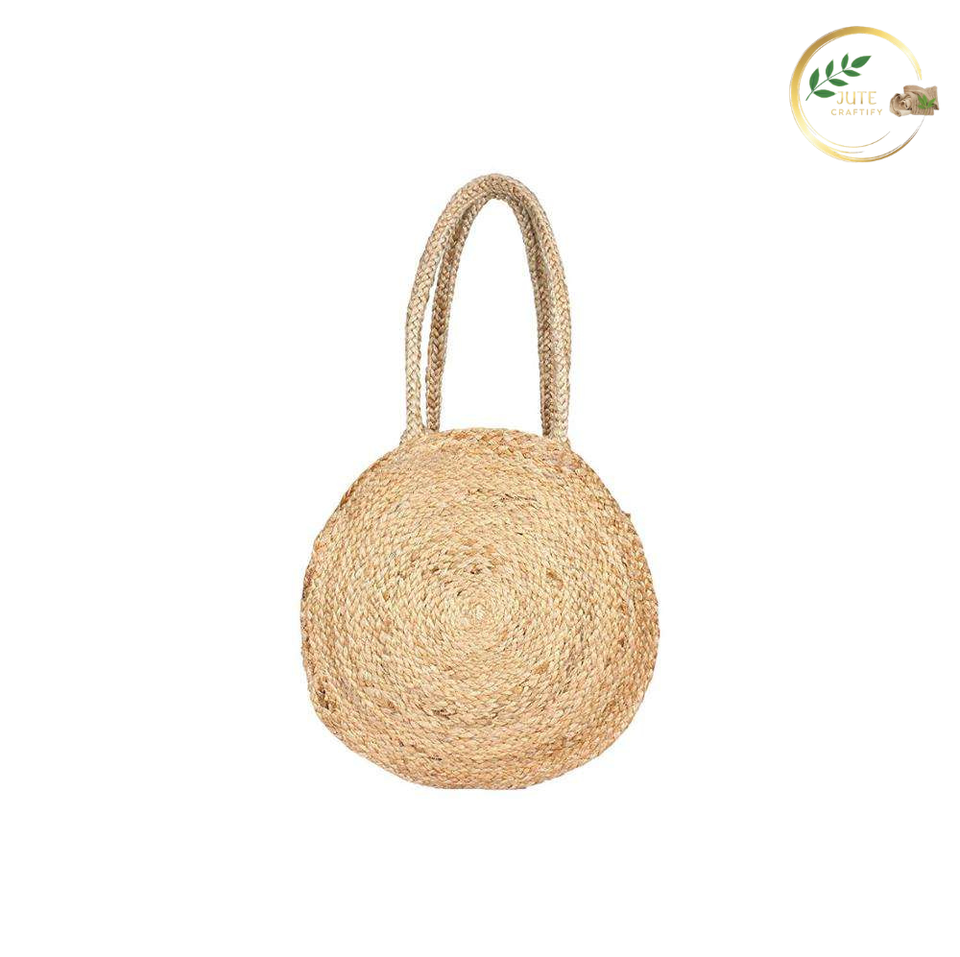 Natural Handmade Jute Round Handbag Eco Friendly Women Fashion Storage Bag for Bedroom & Kitchen Use Foldable