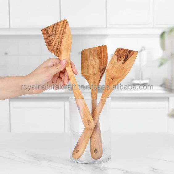 Ensemble d'ustensiles antiadhésifs faits à la main naturels cuillère de cuisine louche à frire et spatule tournante pour la cuisine et la pâtisserie