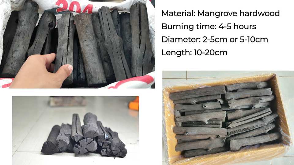 High Quality GREENFIRE Indonesian Stick Natural Hardwood Mangrove Black Charcoal 85% Fixed Carbon 3-4 Hours Burning Time for BBQ