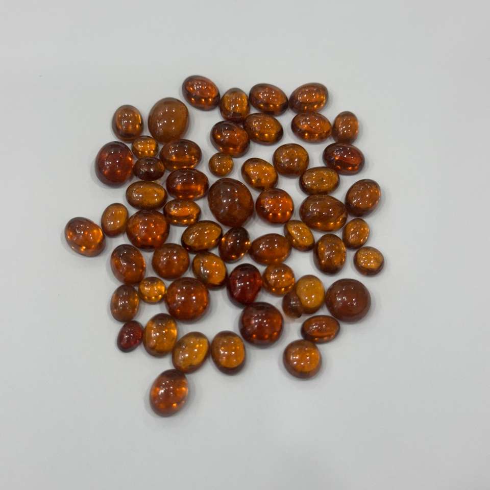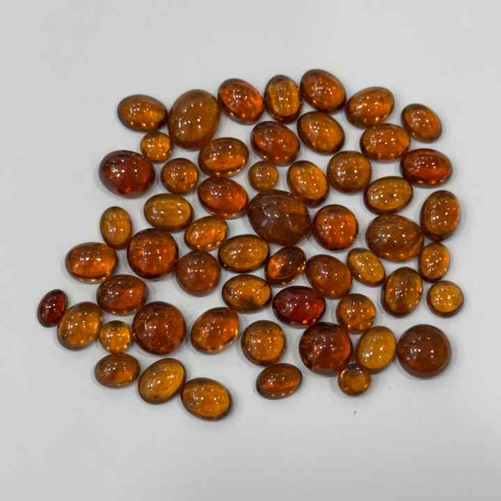 Produit en vrac de pierres précieuses d'hessonite naturelles faites à la main en cabochons lâches de coupe ovale marron parfaitement en forme avec traitement thermique