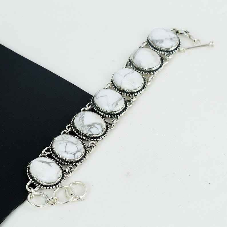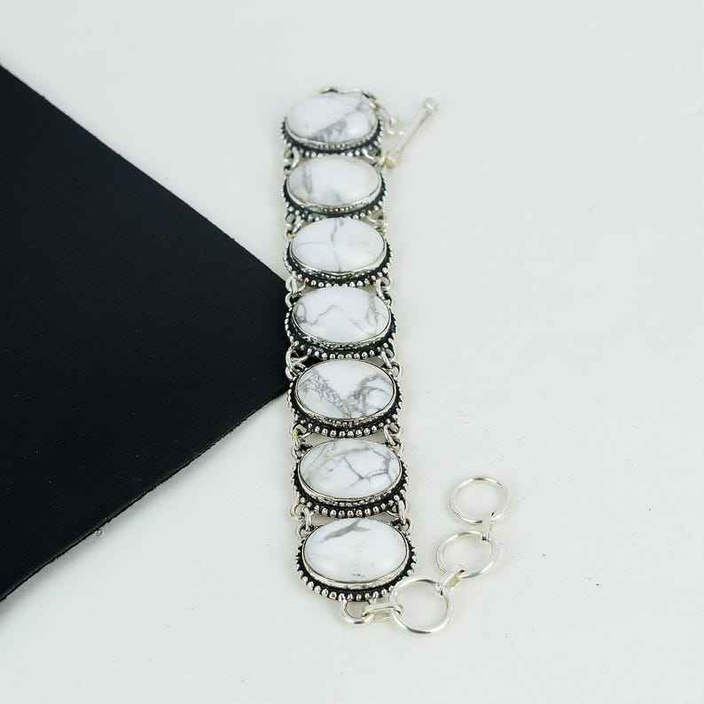 Mot-clé:Bracelet lumineux en howlite, fabriqué avec des pierres.