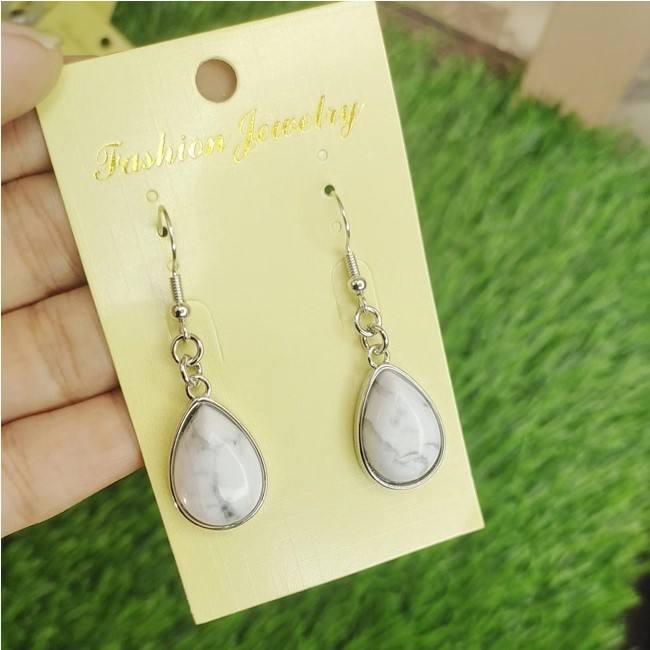Ensemble de boucles d'oreilles en forme de goutte en pierre naturelle Howlite bijoux de mode sculptés avec des éléments en cristal de pierres précieuses artisanat de pierre semi-précieuse