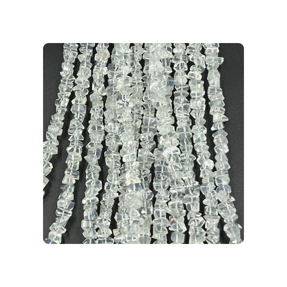 Perles de quartz glacé facettées en forme de pépites