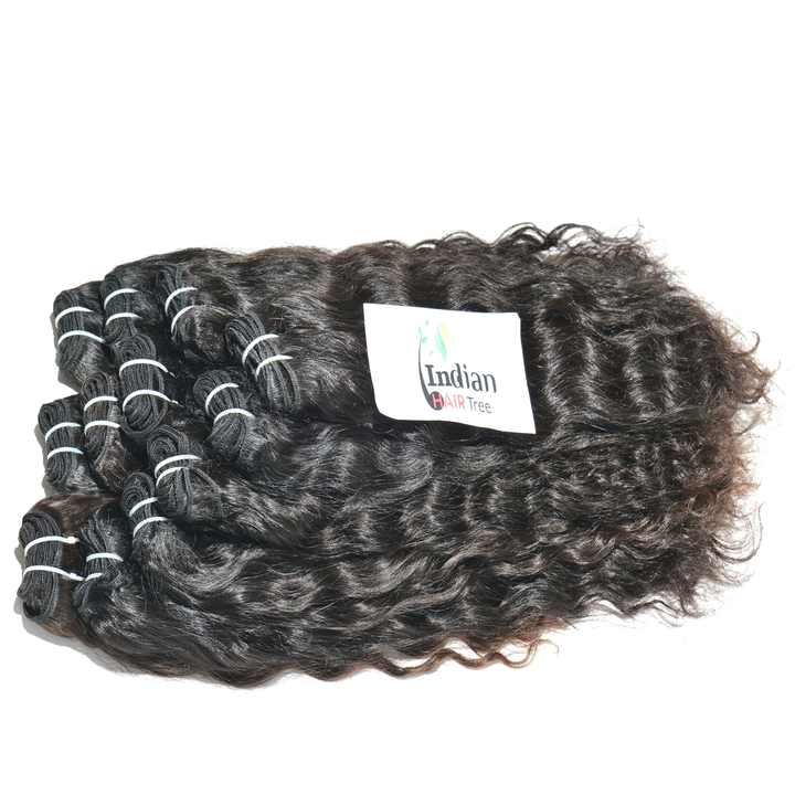Extensions de cheveux humains ondulés ondulés naturels indiens non traités, cuticules alignées vierges noires, tissage à double trame à la machine